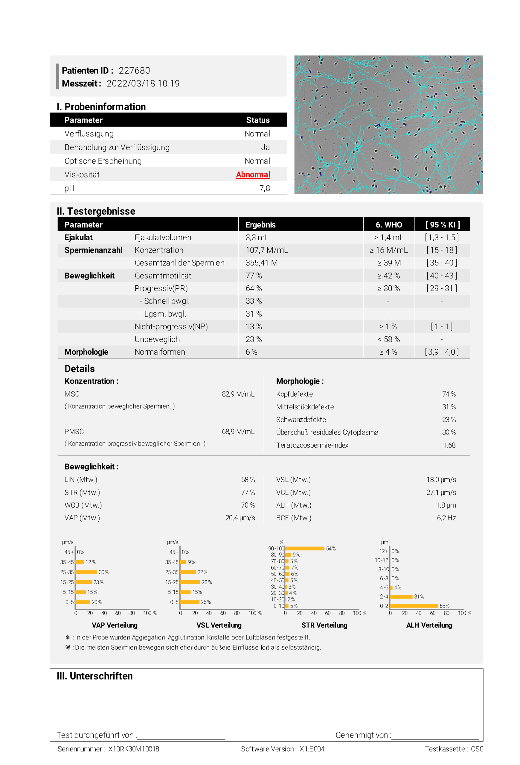 - Mehrere Felder und 3000+ Spermien untersuchbar